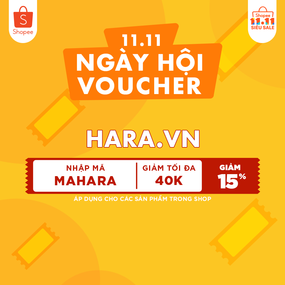 Hara.vn tặng mã MAHARA, giảm 15% tối đa 40k và không giới hạn giá trị đơn hàng. Hạn sử dụng đến hết ngày 29/10.