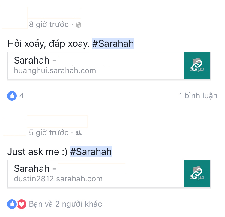 Thế là xong, bạn đã có một tài khoản sarahah rồi đấy, việc còn lại là share link về tường để bạn bè vào đặt câu hỏi nào. Ứng dụng này còn cho phép người đặt câu hỏi không cần tạo tài khoản, chỉ việc click vào link và hỏi, rất phù hợp cho những ai chỉ thích đi hỏi mà không muốn người khác hỏi lại.