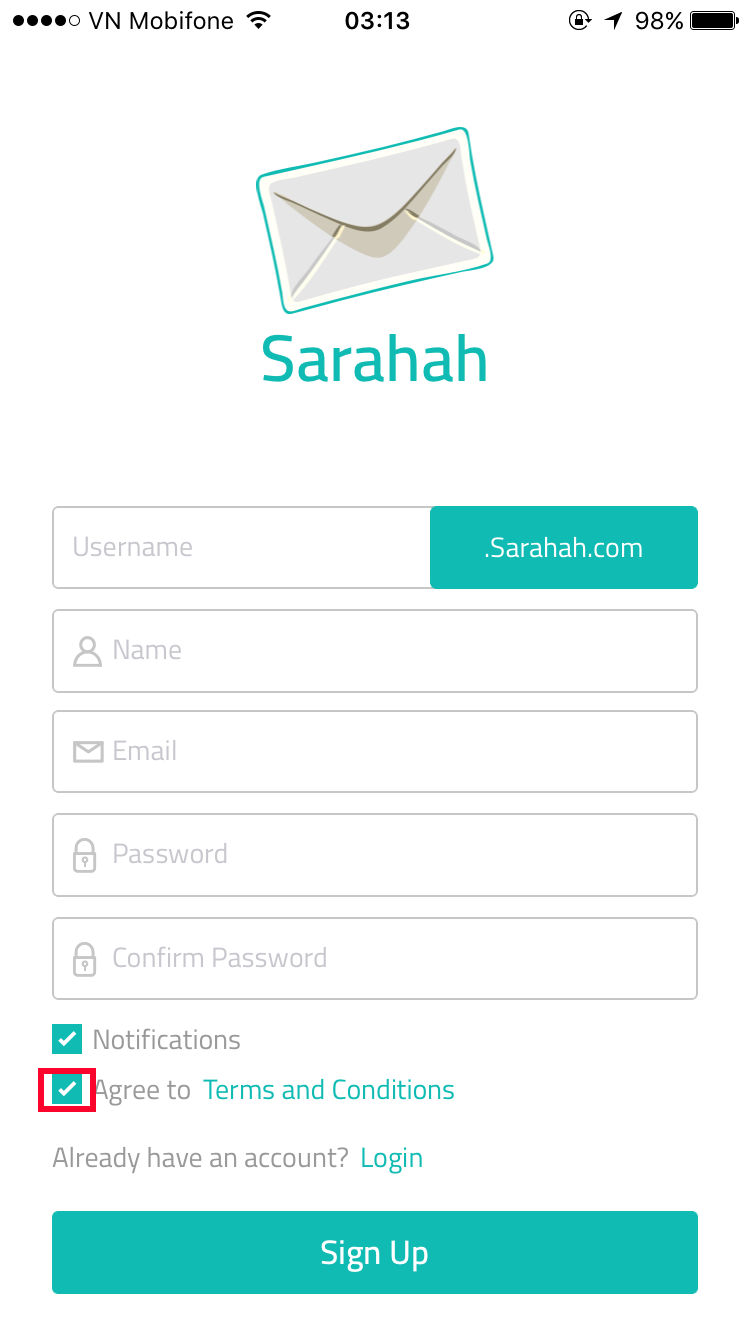 Bước 4: Đánh dấu vào Agree to Term and Conditions và bấm Sign Up
