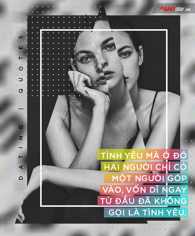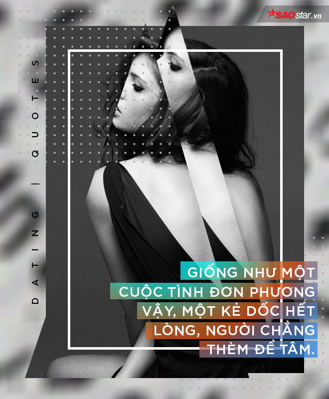 Tình yêu mà ở đó hai người chỉ có một người góp vào, vốn dĩ ngay từ đầu đã không gọi là tình yêu. Giống như tình đơn phương vậy, một kẻ dốc hết lòng, người chẳng thèm để tâm. Đã bao giờ bạn trải qua cảm giác đó? Đã bao giờ bạn tự hỏi rằng: Có phải họ có quá nhiều sự lựa chọn và bạn là một trong những sự lựa chọn đó nên chưa bao giờ họ để tâm hay ngó ngàng đến cảm xúc của bạn? Và nếu không có bạn họ vẫn có một cô gái/ chàng trai khác để chinh phục nên họ không còn tha thiết với bạn?
