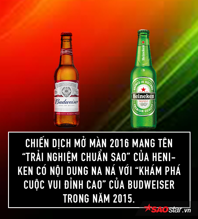 Mới đây, một ông lớn khác trong ngành F&B là Heineken cũng bị giới sáng tạo cho rằng đã đụng ý tưởng khi chiến dịch mở màn 2016 mang tên “Trải nghiệm chuẩn sao” có nội dung na ná với “Khám phá cuộc vui đỉnh cao” của Budweiser trong năm 2015. Điều này đã mở ra một câu hỏi lớn về việc đây có thực sự là một vụ đạo nhái ý tưởng hay không, từ đó đặt ra những câu hỏi nhức nhối về giới hạn sáng tạo của ngành quảng cáo hiện nay. (Theo Brands Vietnam).
