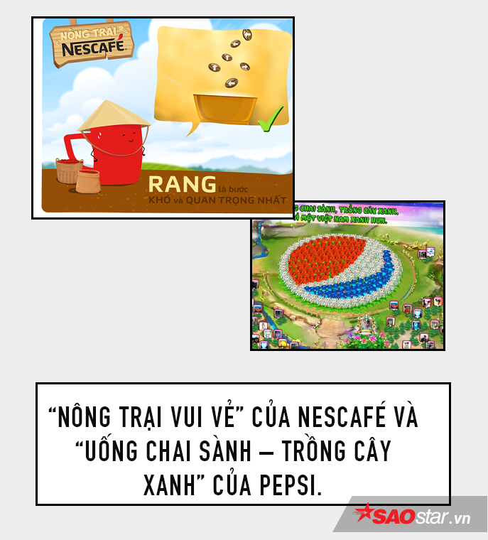 Cách đây khoảng 3 năm, Nescafé đã khởi động chiến dịch truyền thông của mình với vũ khí khá hay mang tên “Nông Trại Vui Vẻ”. Đây là ứng dụng game được thiết kế để thu hút các bạn trẻ, đặc biệt là dân văn phòng trồng cây trên tài khoản ảo của mình. Dựa vào số cây trồng được, Nescafé sẽ quyên góp cây cà phê giống tương ứng cho nông dân. Đây là ý tưởng khá hay, vừa mang tính giải trí, vừa có ích cho xã hội, và cũng giúp Nescafé đưa thương hiệu của mình đến gần hơn với khách hàng mục tiêu. Có lẽ vì thế mà Pepsi Việt Nam không chần chờ gì khi “mượn” chiêu thức này của Nescafé. Với chiến dịch “Uống chai sành - Trồng cây xanh”, Pepsi cũng tạo cho mình ứng dụng game khuyến khích người chơi trồng cây, và Pepsi cũng sẽ noi gương Nescafé trong việc đem cây từ thế giới ảo ra thế giới thật.