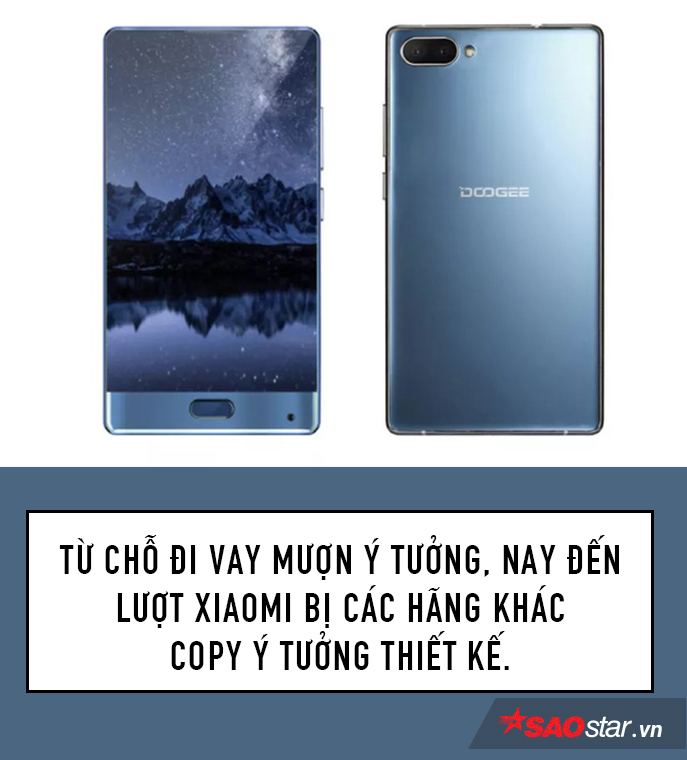 Khi mới có mặt trên thị trường, Xiaomi luôn dính vào các cáo buộc sao chép sản phẩm của các công ty công nghệ phương Tây. Tuy nhiên, hiện tại chính Xiaomi lại trở thành đối tượng “copy” của nhiều hãng khác. Sau khi Xiaomi trình làng Mi Mix, xu hướng viền màn hình siêu mỏng đã nhanh chóng lan rộng trong làng công nghệ, từ LG G6 tới Galaxy S8 và sắp tới có thể là cả iPhone 8. Xiaomi dường như đã thoát khỏi cái mác “Apple Trung Quốc” và giờ thì hãng có thể tự hào khi thiết kế của mình trở thành nguồn cảm hứng vô tận của ngành công nghiệp di động.