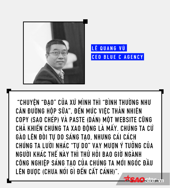 Vấn đề “lấy cảm hứng” hay “mượn ý tưởng” luôn là chủ đề được tranh luận vô cùng sôi nổi trên mạng bởi ranh giới giữa hai khái niệm này vô cùng mong manh, nếu sử dụng không khéo là đã trở thành “tội đồ” trong thời đại thông tin bùng nổ như hiện nay. Trên trang cá nhân của mình, anh Lê Quang Vũ (Giám đốc điều hành Công ty Truyền thông Blue C) cho rằng: “Chuyện “đạo” của xứ mình thì “bình thường như cân đường hộp sữa”, đến mức việc thản nhiên copy (sao chép) và paste (dán) một website cũng chả khiến chúng ta xao động là mấy. Chúng ta cứ gào lên đòi tự do sáng tạo, nhưng cái cách chúng ta lười nhác “tự do” vay mượn ý tưởng của người khác thế này thì thử hỏi bao giờ ngành công nghiệp sáng tạo của chúng ta mới ngóc đầu lên được (chưa nói gì đến cất cánh)”.