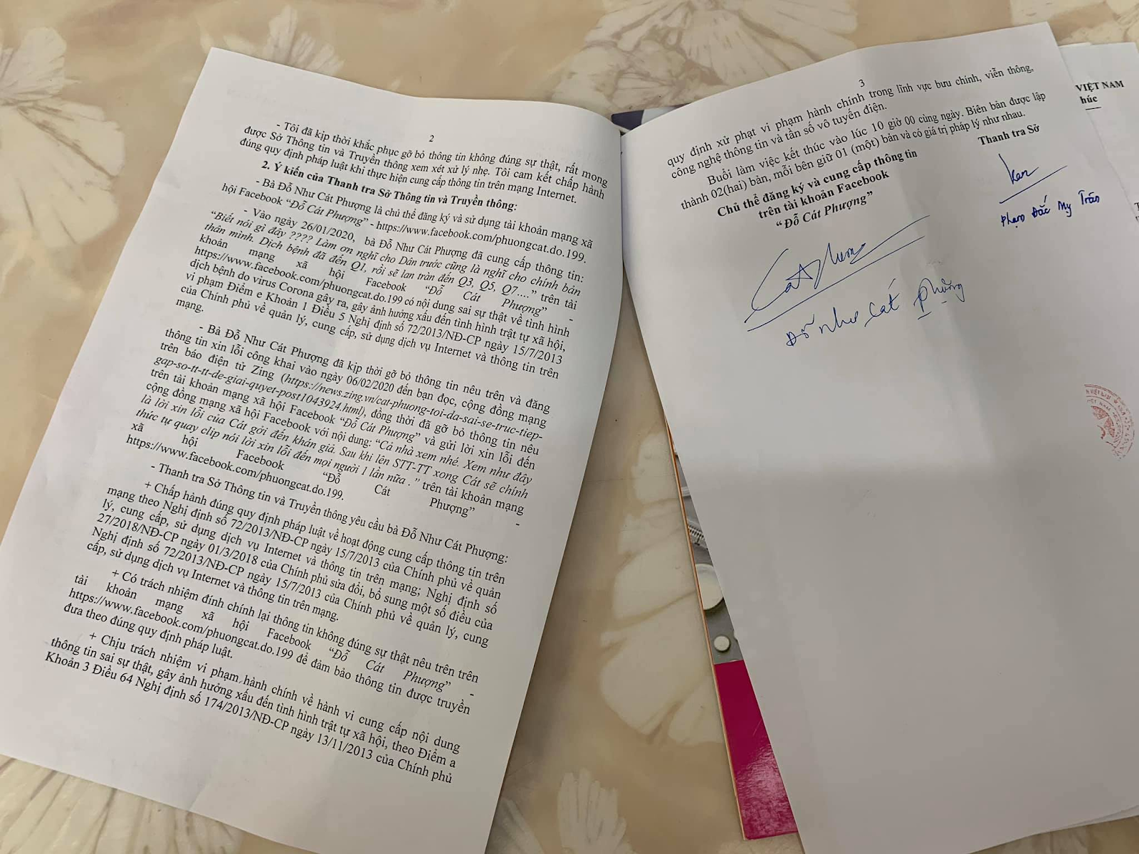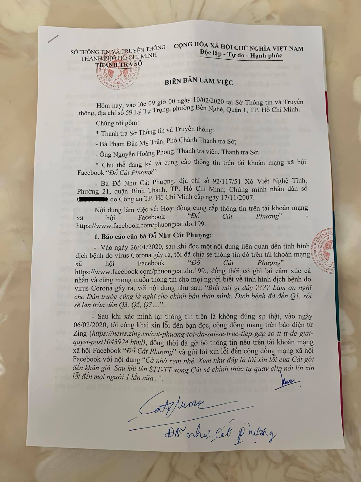 Biên bản làm việc của Cát Phượng với Sở Thông tin - Truyền thông TP HCM