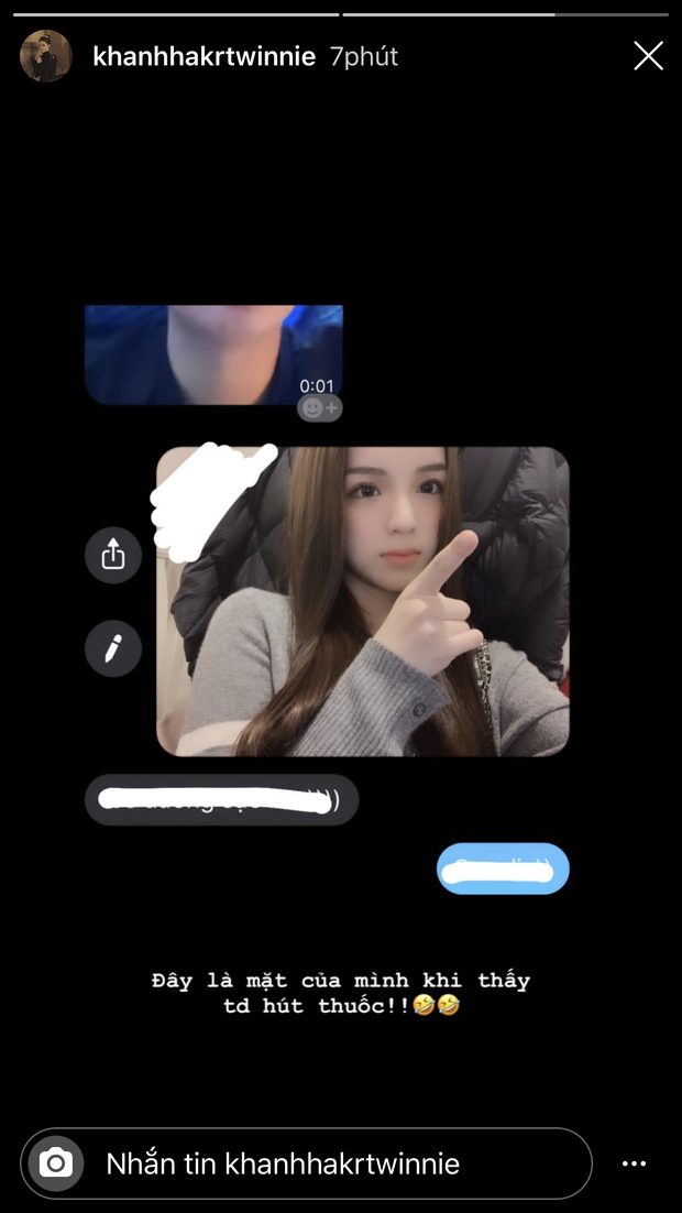 Khánh Hà đăng tải một đoạn tin nhắn khá thân thiết với một anh chàng dấu mặt