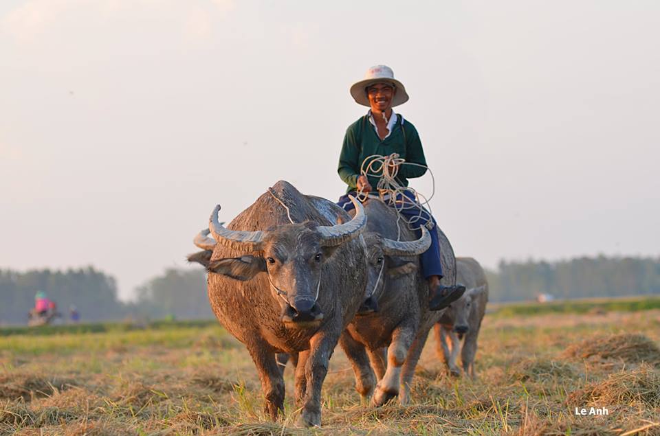 Một người đàn ông đang tìm những bãi cỏ để thả trâu.