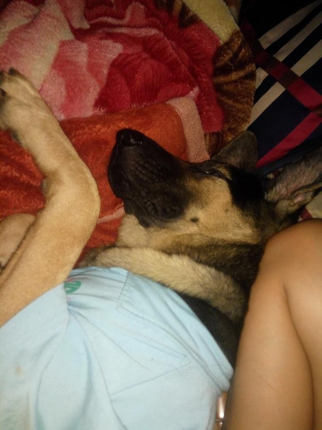 Ngay sau khi đăng tải, “thứ chó” theo lời người vợ kể chính là thú cưng của gia đình chủ thớt. Bài viết đăng kèm 2 bức ảnh chú chó đang ôm chồng chủ thớt ngủ ngon lành mặc kệ vợ chính chuyên đang ấm ức ngồi góc giường.