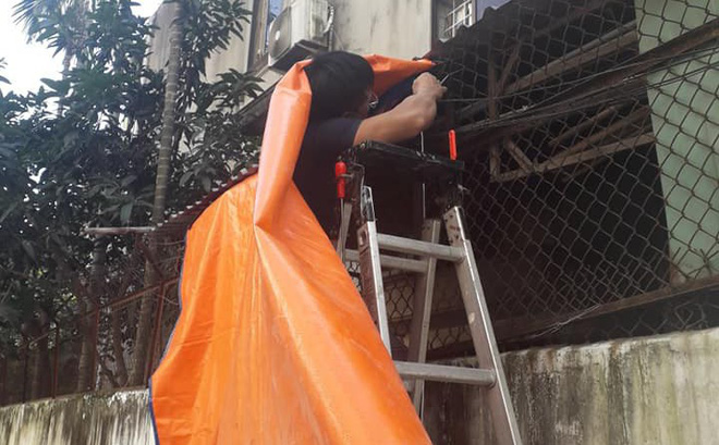 Anh sếp dễ thương bắc thang che bạt để xe cho nhân viên
