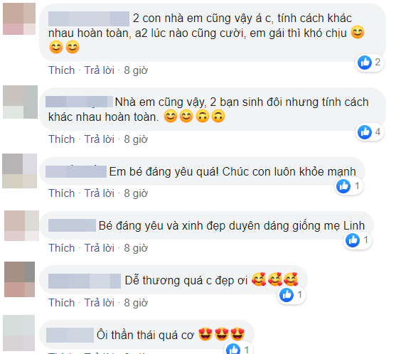 Bài đăng của Shark Linh nhanh chóng nhận được sự đồng tình và những phản hồi tích cực từ phía cộng đồng mạng: “trộm vía bé vui vẻ giống chị Linh. chúc hai mẹ con lúc nào cũng tươi vui”, “Em bé dễ thương quá, nụ cười toe toét, tỏa sáng mọi góc nhìn đấy ạ. Chúc cả nhà Mẹ Linh vui vẻ”, “Nhìn hai mẹ con chị tràn đầy năng lượng. Mỗi lần lướt qua FB của chị em cũng thấy năng lượng được lan tỏa”,…