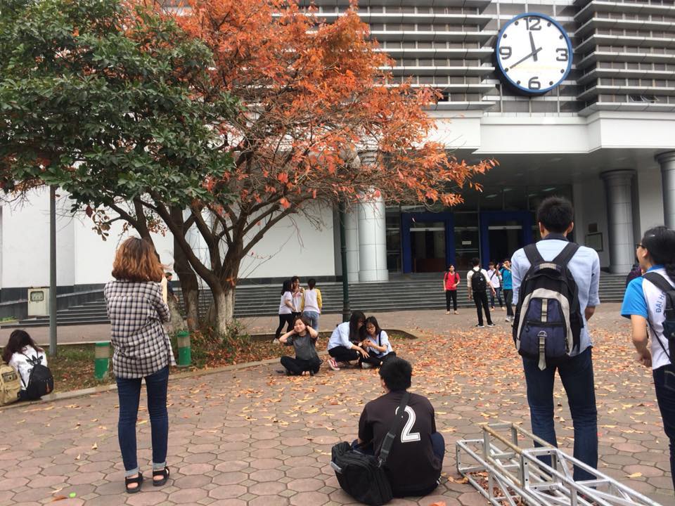 Chẳng cần phải đi đâu xa như Hàn Quốc, Nhật Bản… chỉ cần đến trường ĐH Bách Khoa những ngày này, bạn sẽ thấy dân tình thi nhau chụp ảnh dưới gốc cây đang ngả lá vàng phía trước thư viện. Chỉ cần tạo dáng, chụp và chỉnh màu một tý tẹo… trông bạn chả khác gì là đang đi du lịch nước ngoài đâu.