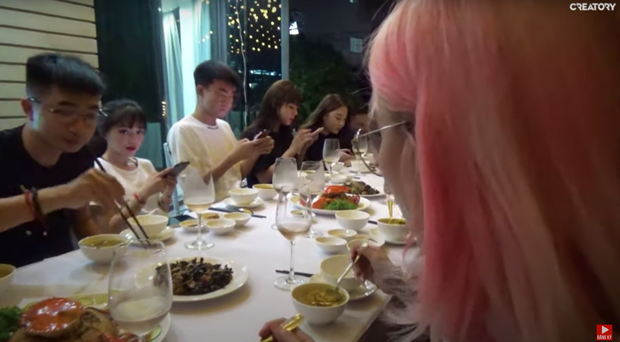 Cả hai ngồi cạnh nhau lúc ăn uống cùng bạn bè.