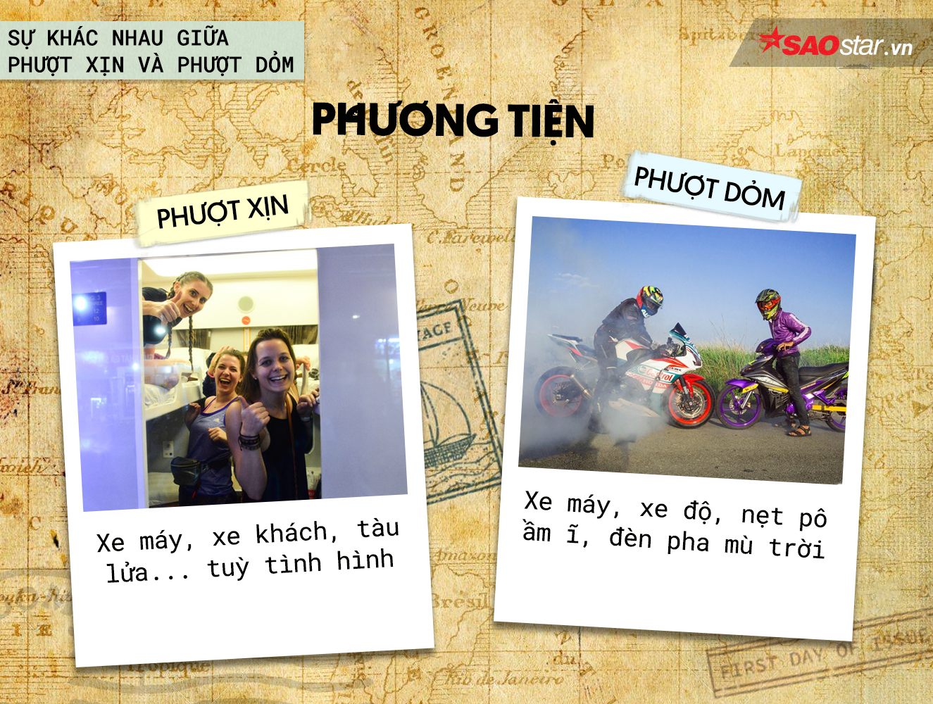 Với những Phượt thủ xịn, họ luôn chọn phương tiện tùy tình hình đường sá, điều kiện… Miễn tới nơi là được. Nhưng Phượt dởm thì luôn ưu tiên xe máy độ ga, để dễ nẹt pô, rú ga ầm ĩ.