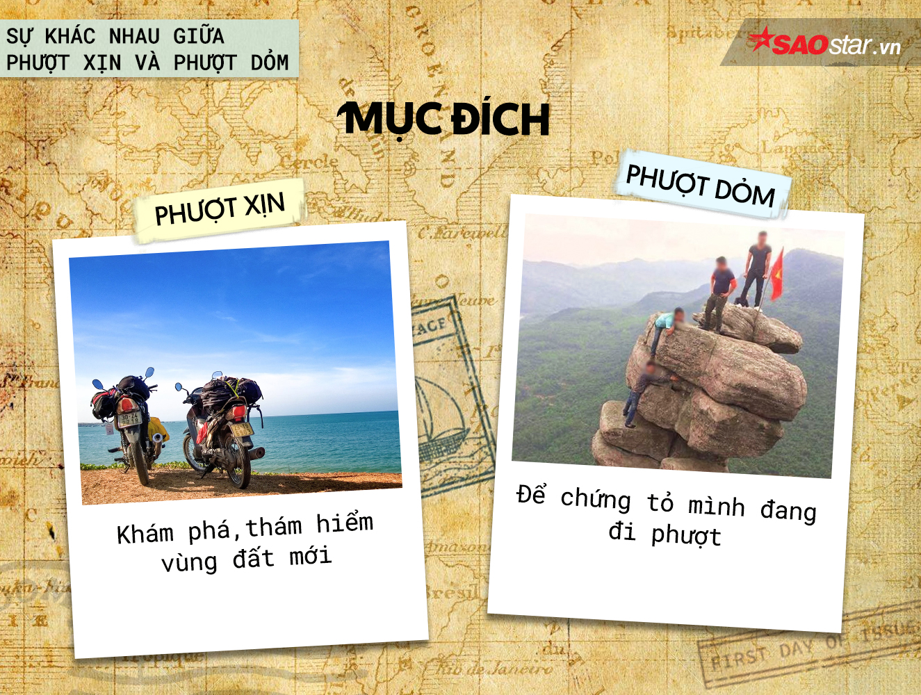 Mục đích đi phượt của những Phượt thủ chân chính luôn là khám phá các vùng đất mới, có thêm những kỷ niệm đẹp.. Còn Phượt dởm - đôi khi đi phượt chỉ để chứng tỏ mình biết phượt mà thôi