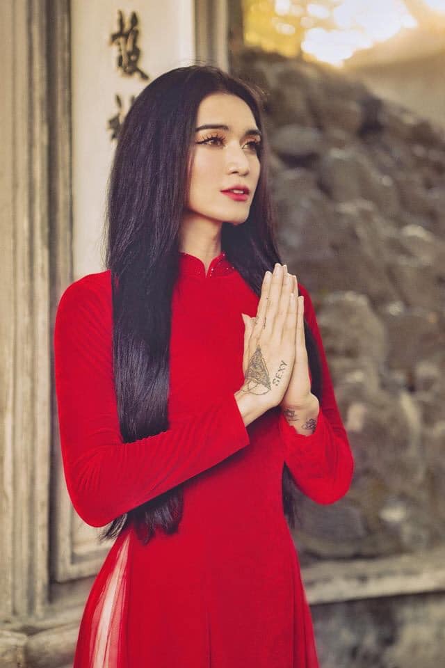Fan "nổ đom đóm" mắt sau khi nhìn thấy BB Trần trong bộ áo dài nhung đỏ trong bộ ảnh mới đây.