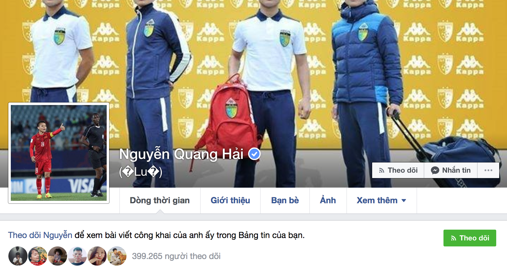 Facebook của Quang Hải cũng đã có dấu tích xanh.