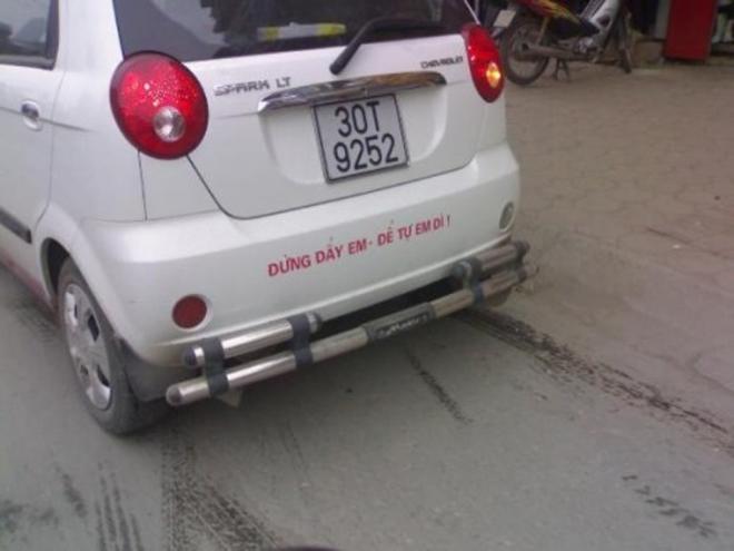 Hay dòng chữ “Đừng đẩy em, để em tự đi” khiến không ít người phải bật cười mà kiềm chế tay lái.