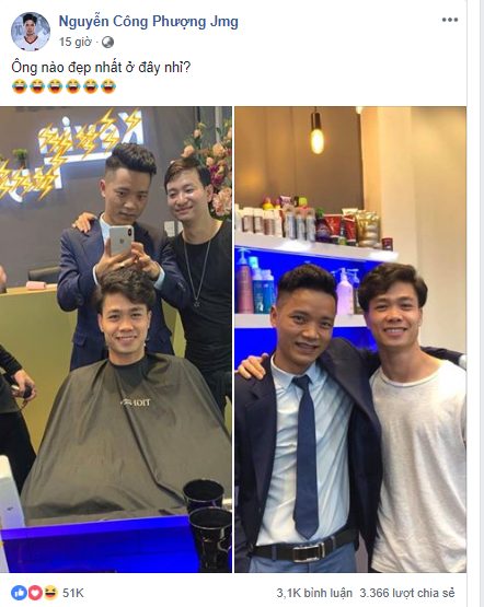 Khá hài lòng về kiểu tóc mới, Công Phượng đã khoe hình ảnh của mình chụp cùng những người bạn lên trang cá nhân kèm câu hỏi đầy “mùi thách thức”: Ông nào đẹp nhất ở đây nhỉ?”