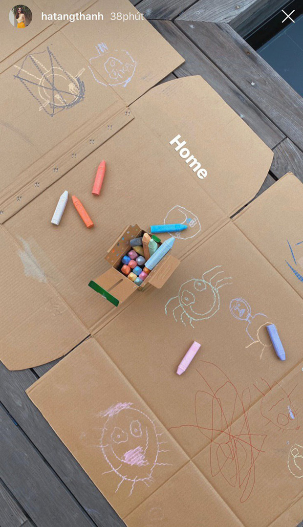 Trong ảnh, cô dùng bìa carton để làm giấy vẽ cho các con thỏa sức sáng tạo. Điều này khiến nhiều cư dân mạng không khỏi ngạc nhiên bởi lẽ, gia đình Tăng Thanh Hà vốn dĩ nổi tiếng giàu có, 2 nhóc tỳ Richard Nguyễn và Chloe Nguyễn vừa chào đời cũng đã sống trong nhung lụa, được bố mẹ cưng chiều hết mực.