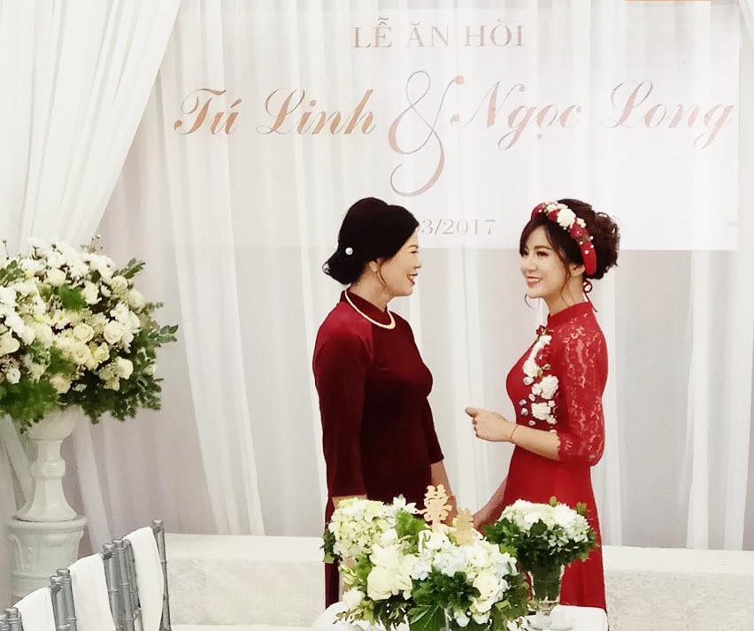 Rạng ngời trong tà áo dài đỏ, Tú Linh thể hiện rõ niềm vui mới của một cô dâu sắp được lên xe hoa về với tổ ấm của mình. Những hình ảnh về lễ ăn hỏi của cô nhanh chóng được nhiều người chia sẻ.