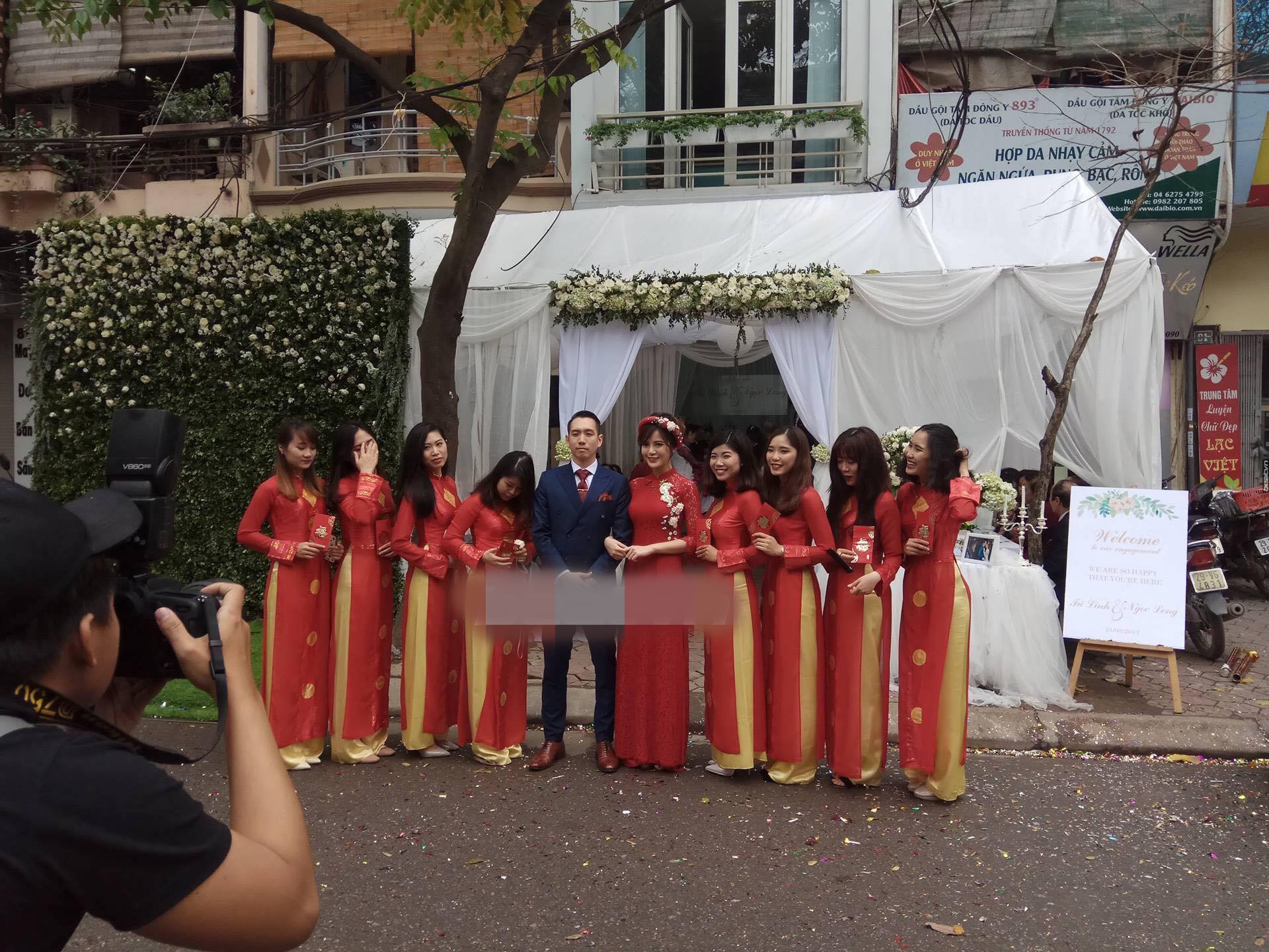 Tú Linh chụp hình cùng dàn nữ bê cháp duyên dáng trong tà áo dài đỏ.