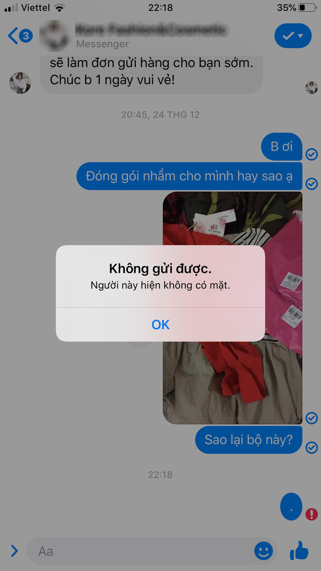 Shop đồ này đã lập tức block cô nàng sau khi bị phản hồi.