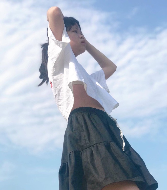 Thay vì diện những bộ đồ đơn giản, nhí nhảnh như trước đây, cô bạn chuyển sang quần áo hợp mốt như: áo croptop, váy 2 dây...