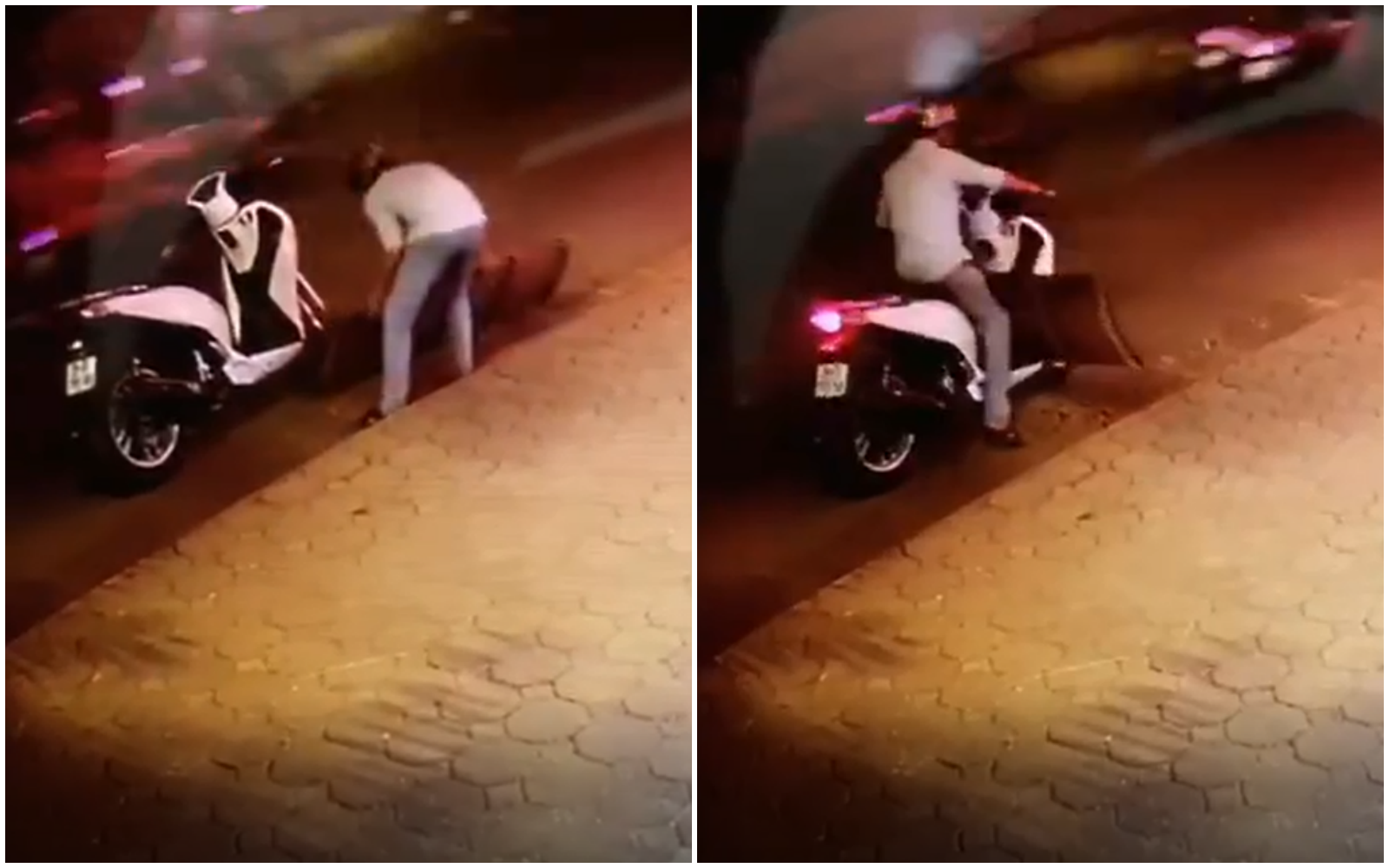 Được biết, sự việc được ghi lại tại camera an ninh vào lúc 22h tối 15/10 trước cửa một tiệm kính mắt tại đường Xuân Thủy, Cầu Giấy, Hà Nội.