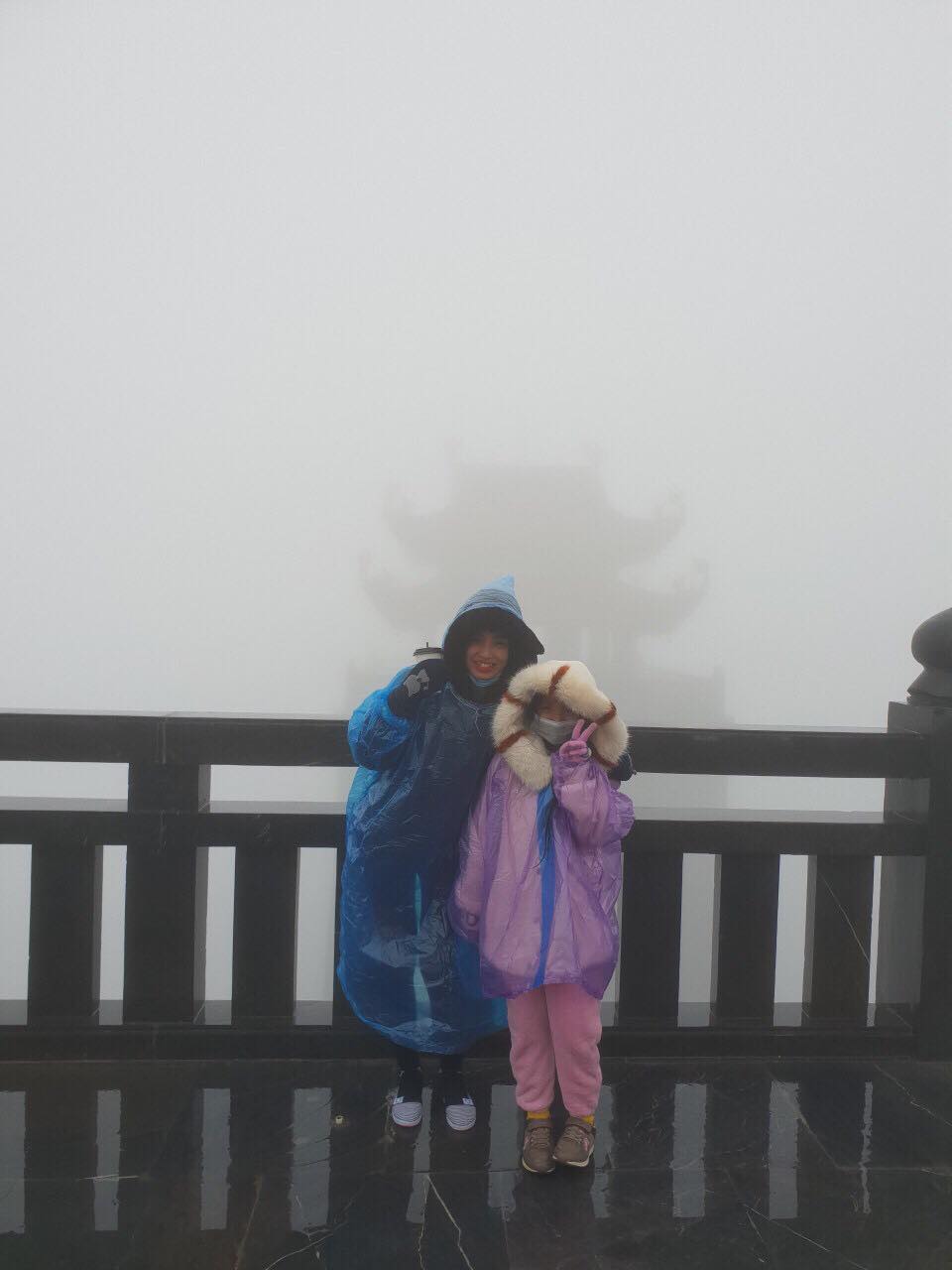 Em gái 9 tuổi (phải) của Hoàng Long diện áo ấm cũng có mặt trên đỉnh Fansipan cùng anh trai mình đi trải nghiệm.