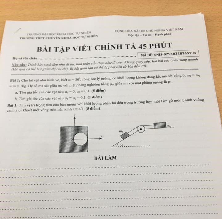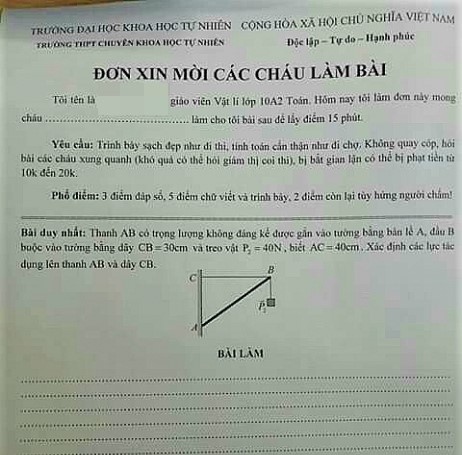 Một trong những đề kiểm tra độc đáo do thầy Hoàng soạn cho các học sinh của mình.