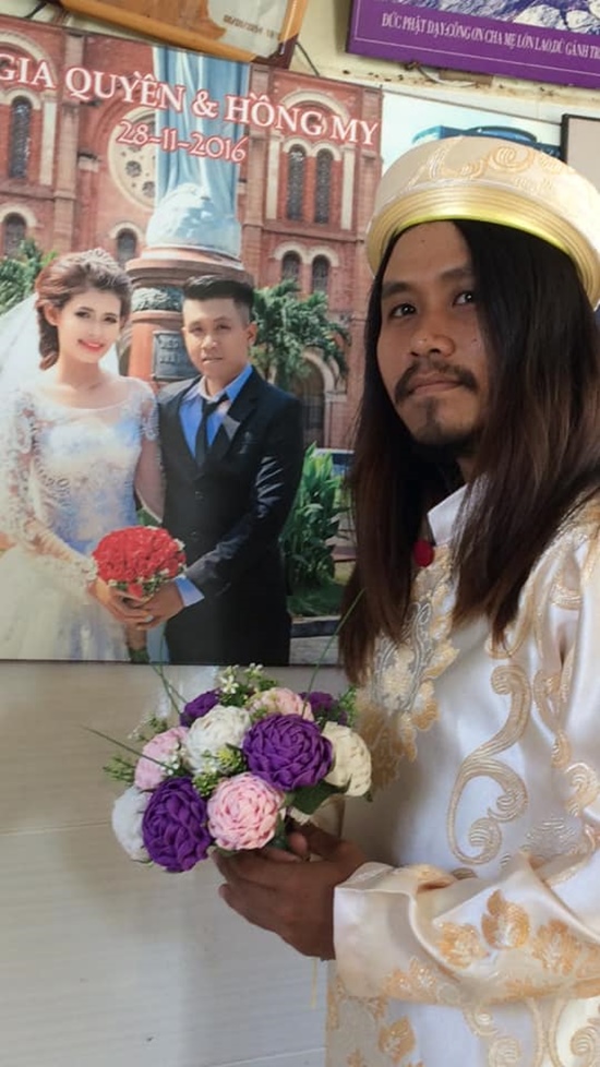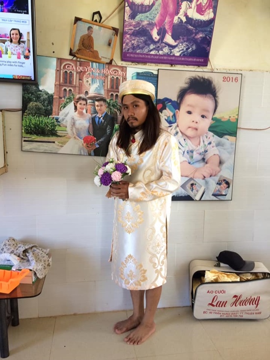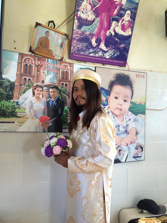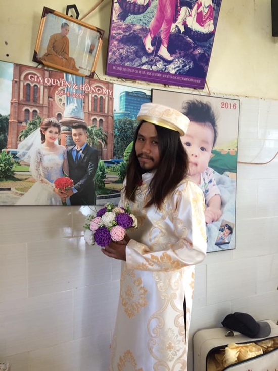 Hình ảnh của ông bố trẻ khi mới cưới vợ, trông bảnh bao và đẹp trai.