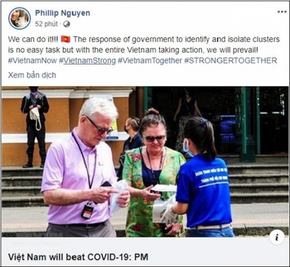 Trước đó, ngay khi em gái Tiên Nguyễn bị phát hiện nhiễm COVID-19, Phillip Nguyễn cũng đã đăng một bài chia sẻ bằng tiếng Anh trên trang cá nhân: “Chúng ta có thể làm được. Phản ứng của cơ quan chính phủ nhằm xác định và cách ly tập trung là một nhiệm vụ không hề dễ dàng nhưng một khi cả Việt Nam hành động, tất cả chúng ta đều sẽ giành được thế thượng phong trong công cuộc chống dịch virus”.