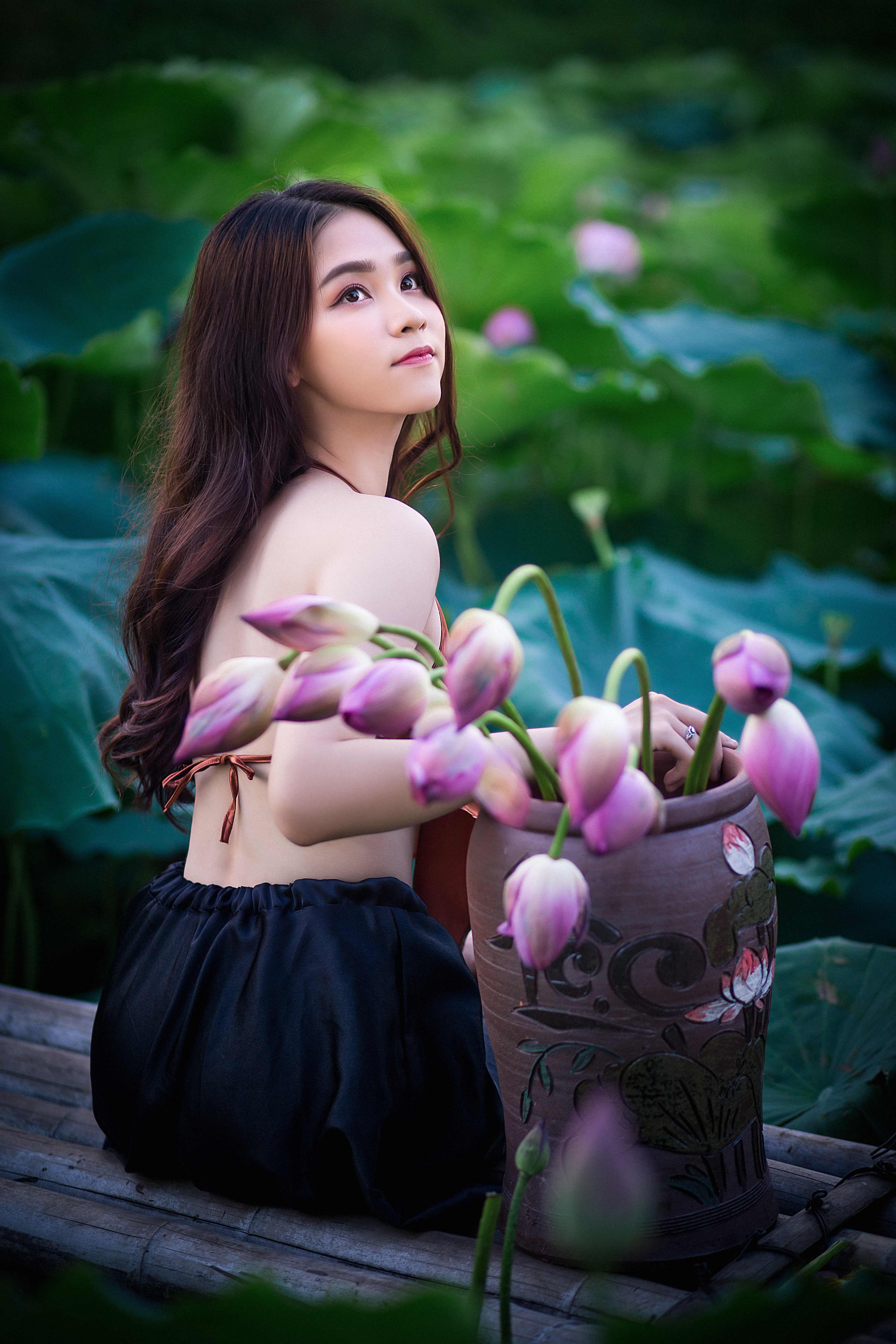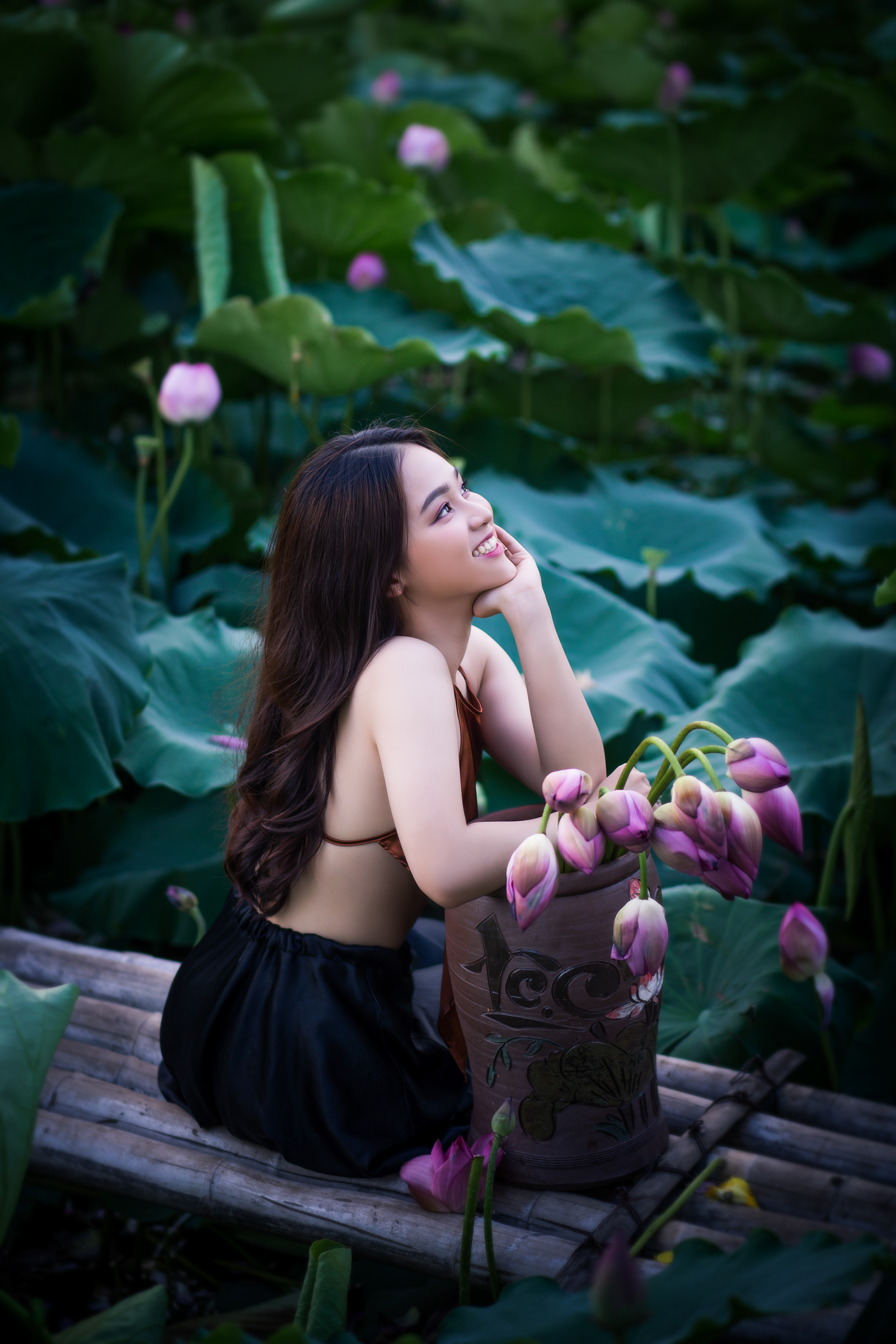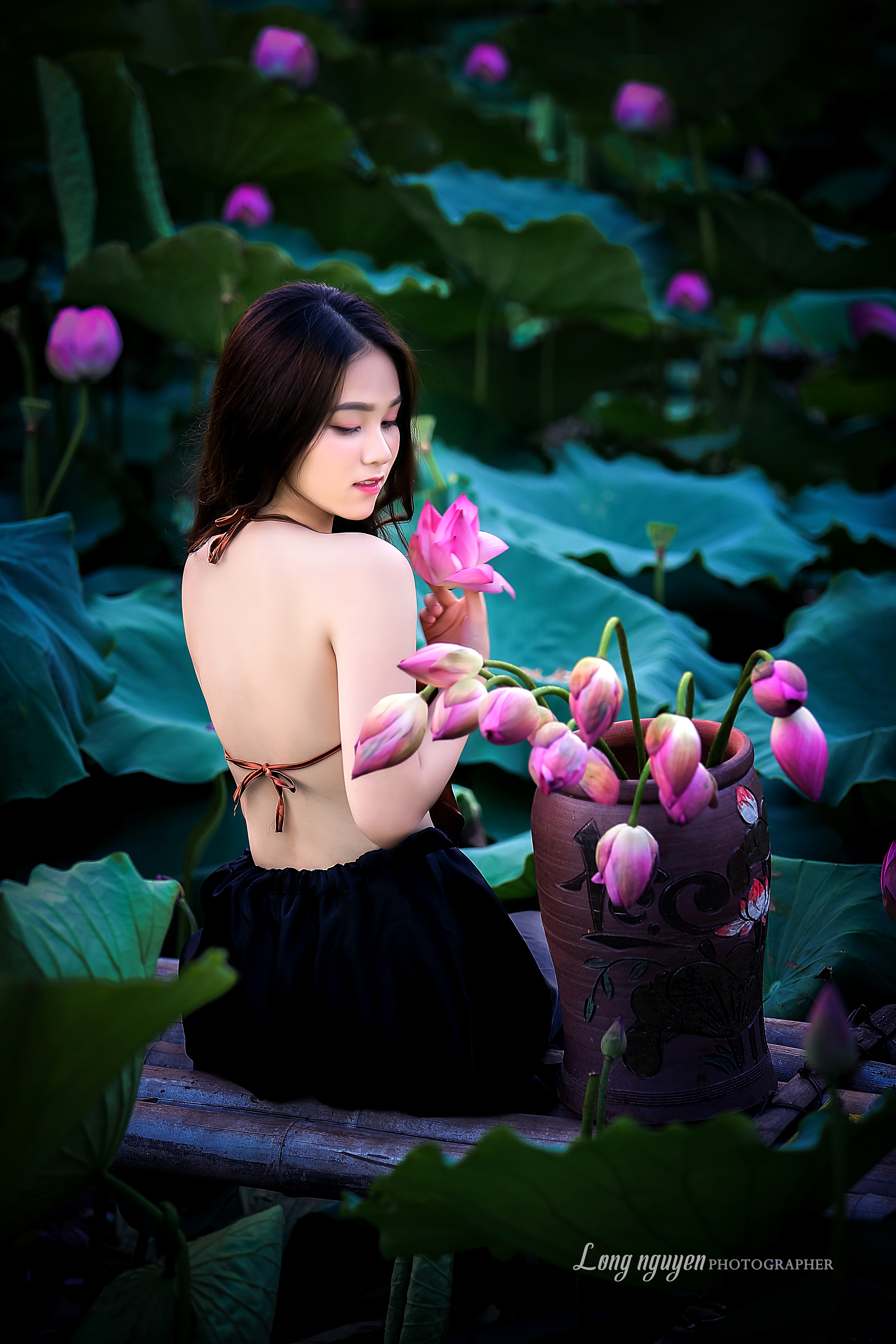 Vẻ đẹp của thiếu nữ tuổi 17 bên hoa những cánh hoa sen.