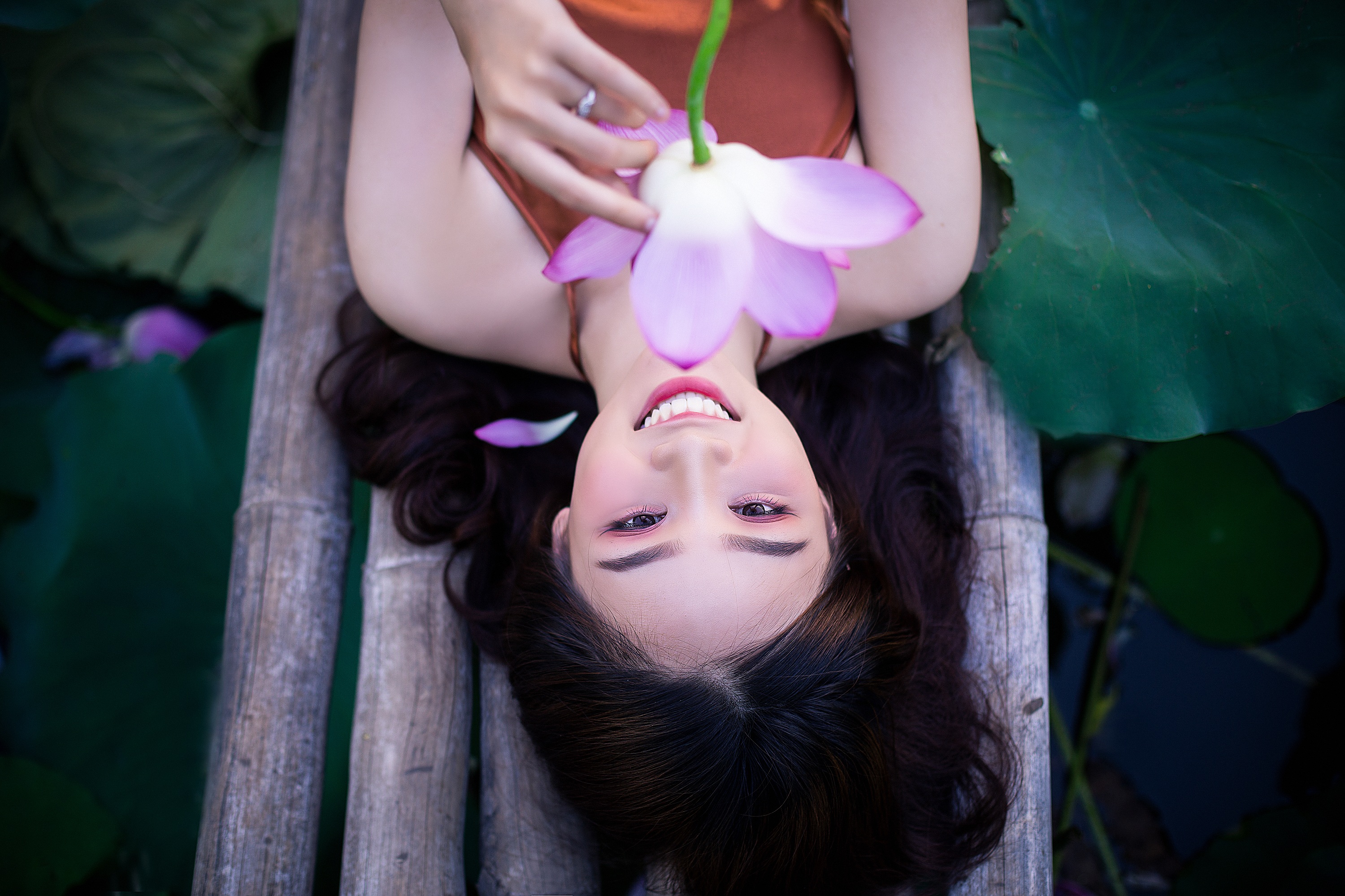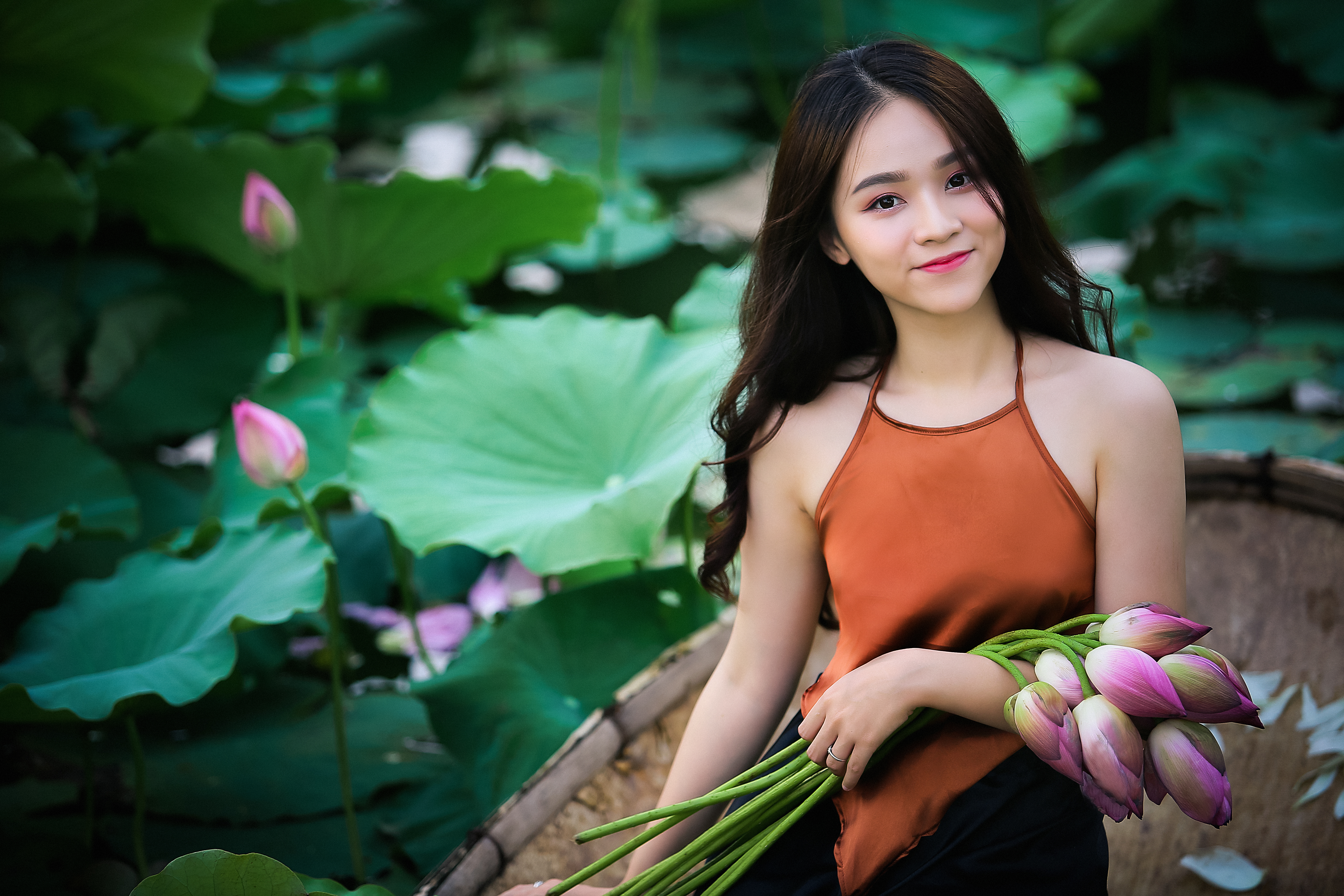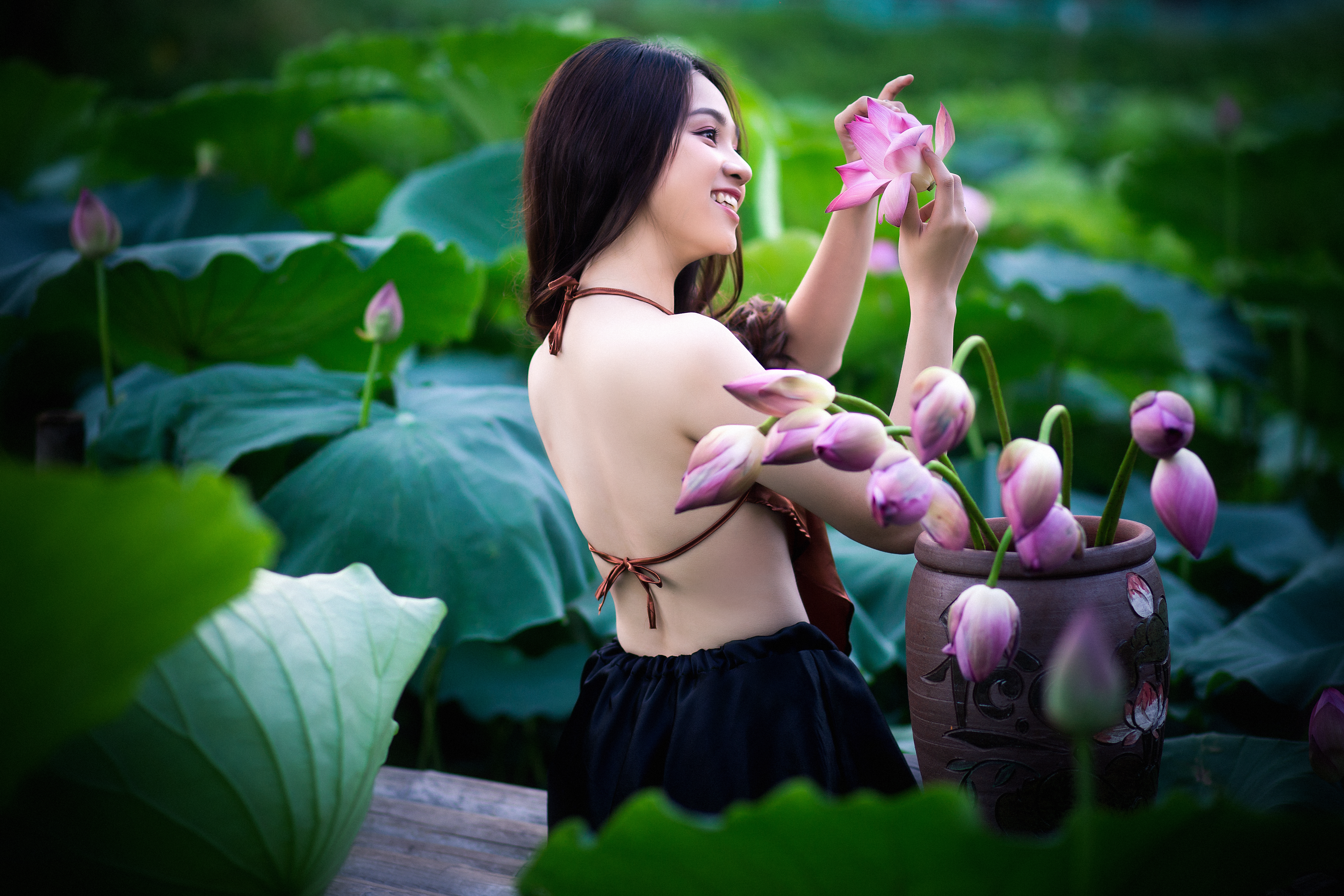 Vẻ đẹp của thiếu nữ tuổi 17 bên hoa những cánh hoa sen.