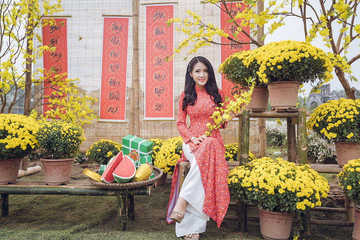 Các tiểu cảnh với chủ đề về Tết cũng thu hút các cô gái tạo dáng chụp ảnh