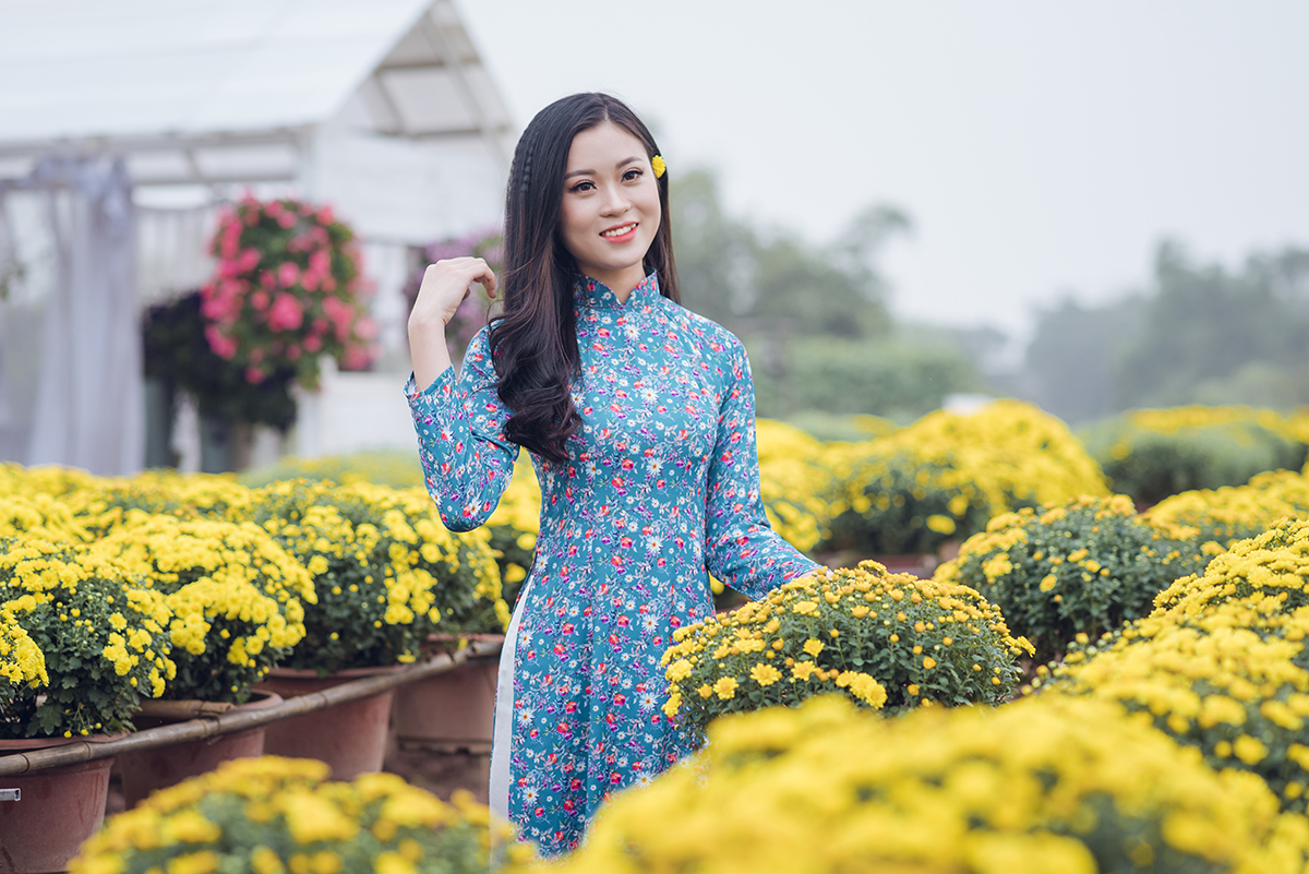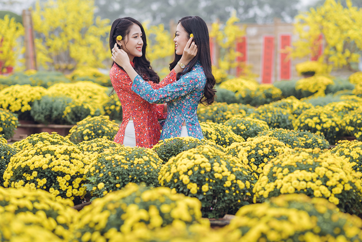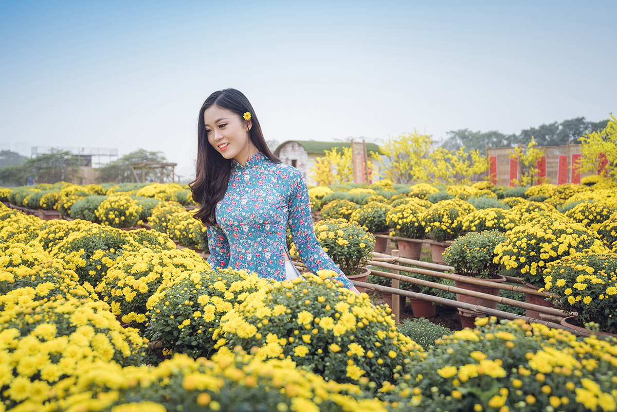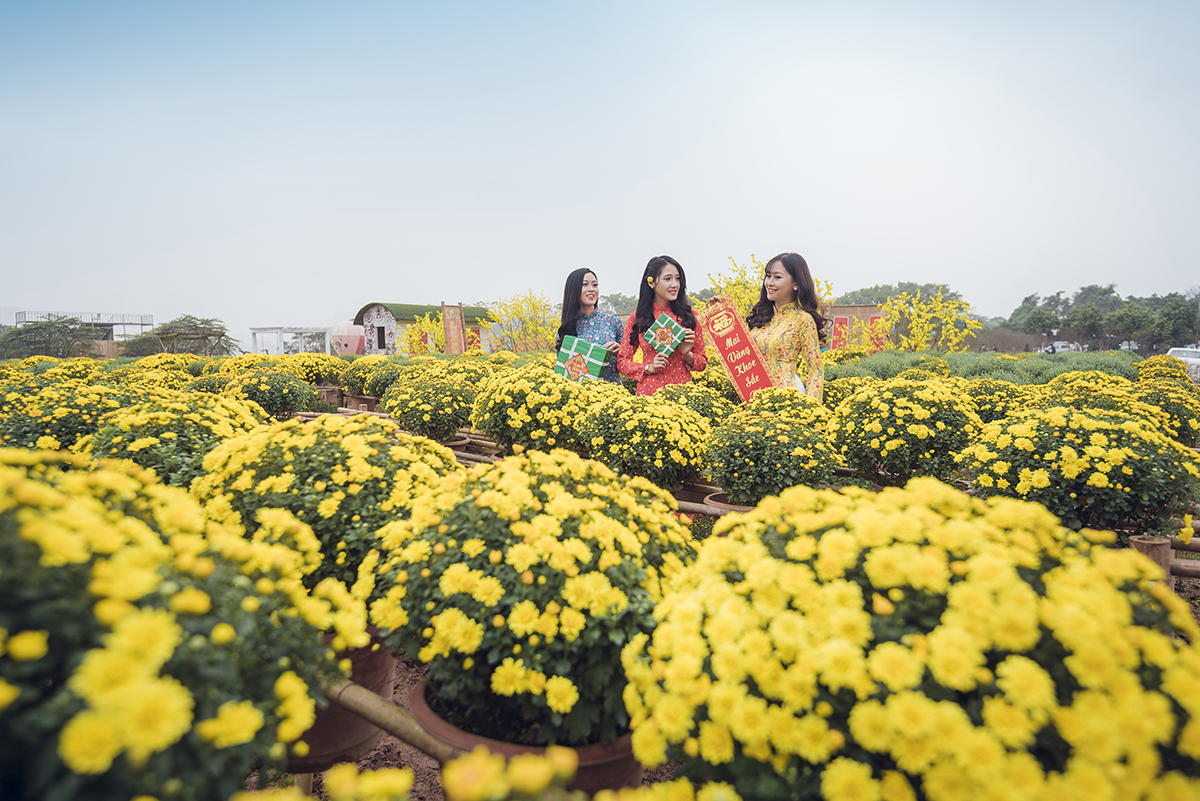 Các thiếu nữ hào hứng diện áo dài nền nã, khoe sắc giữa cánh đồng hoa cúc mâm xôi vàng rực
