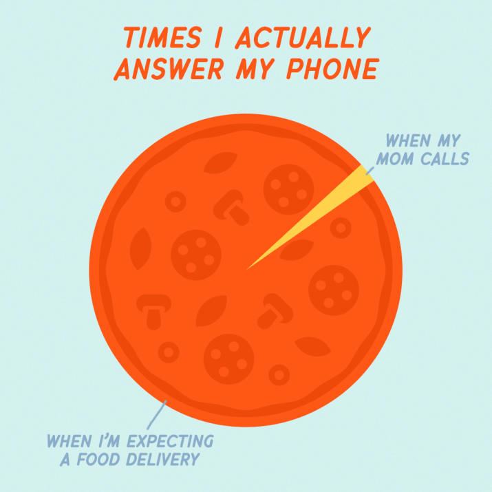 Số lần thực tế bạn nghe điện thoại “Khi mẹ gọi” vs “Khi đồ ăn gọi” quả là cách biệt khá lớn.