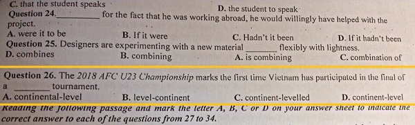 Đội tuyển U23 Việt Nam xuất hiện trong đề Tiếng Anh.