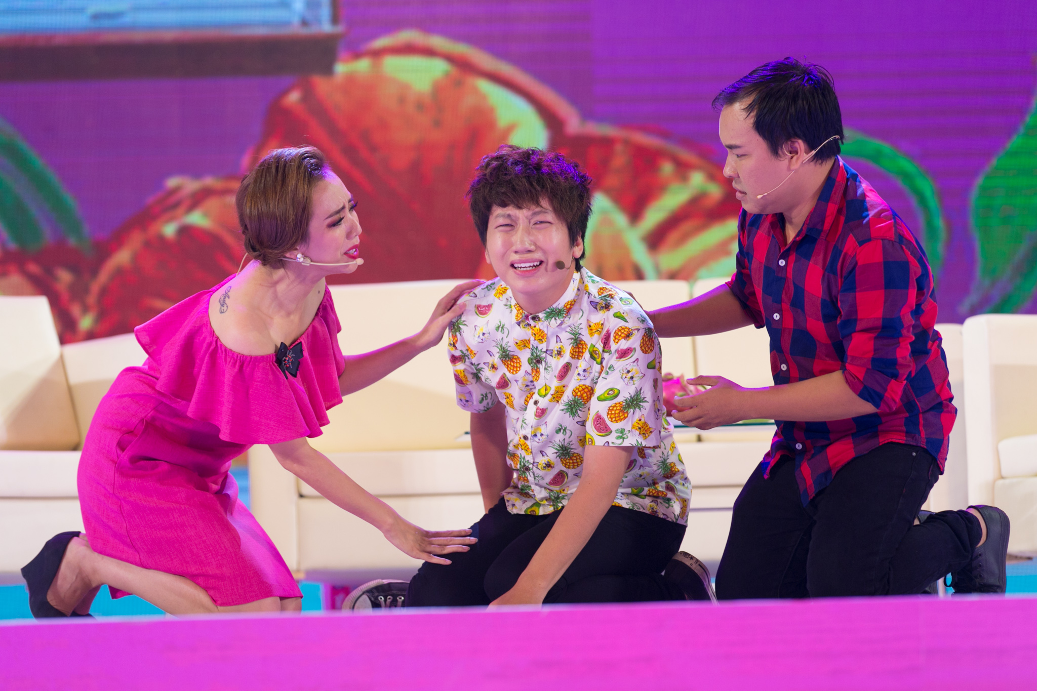 Thu Trang phối hợp ăn ý với hai bạn diễn để mang lại tiếng cười cho khán giả bằng những màn đối đáp rất đời.