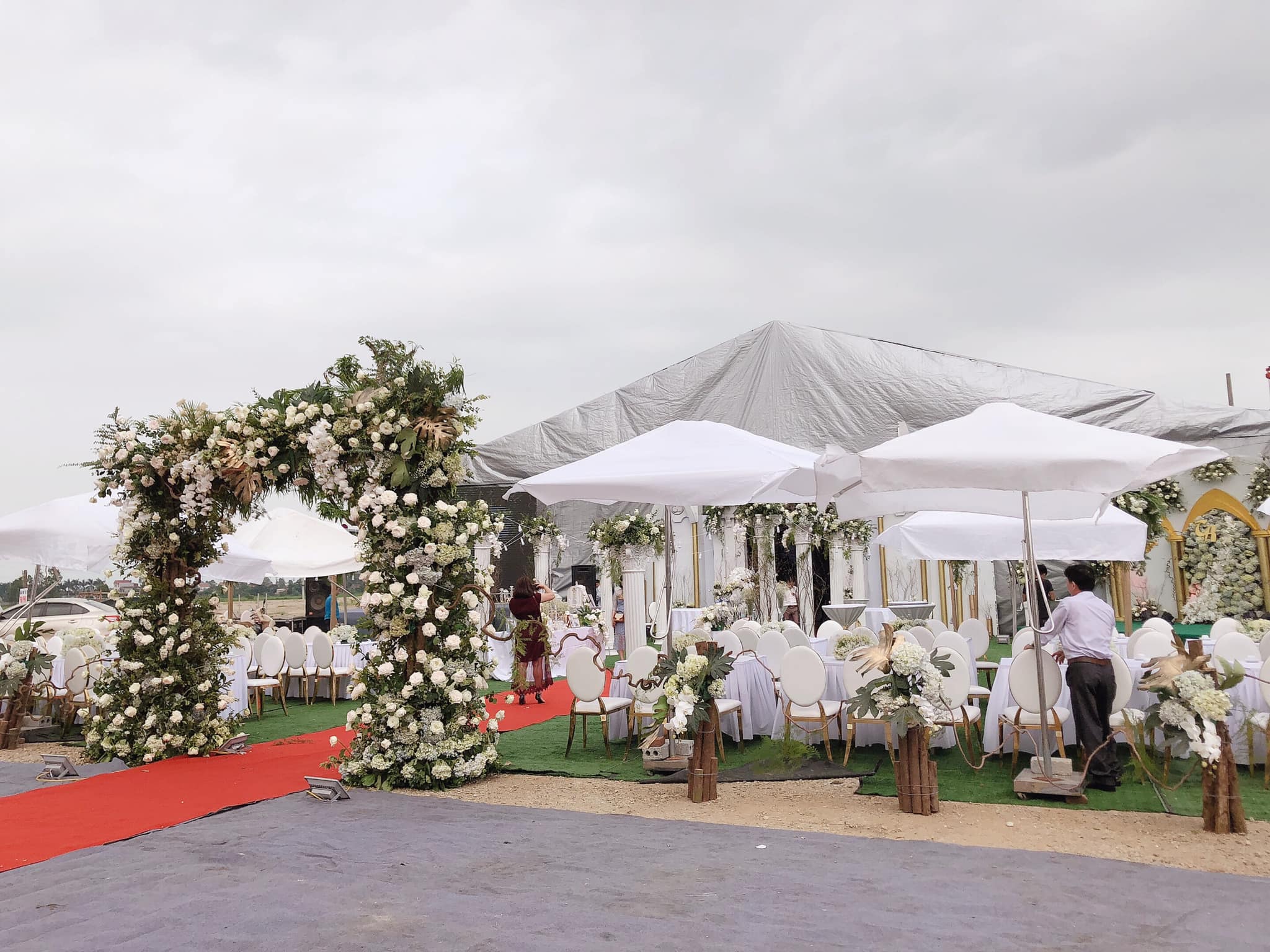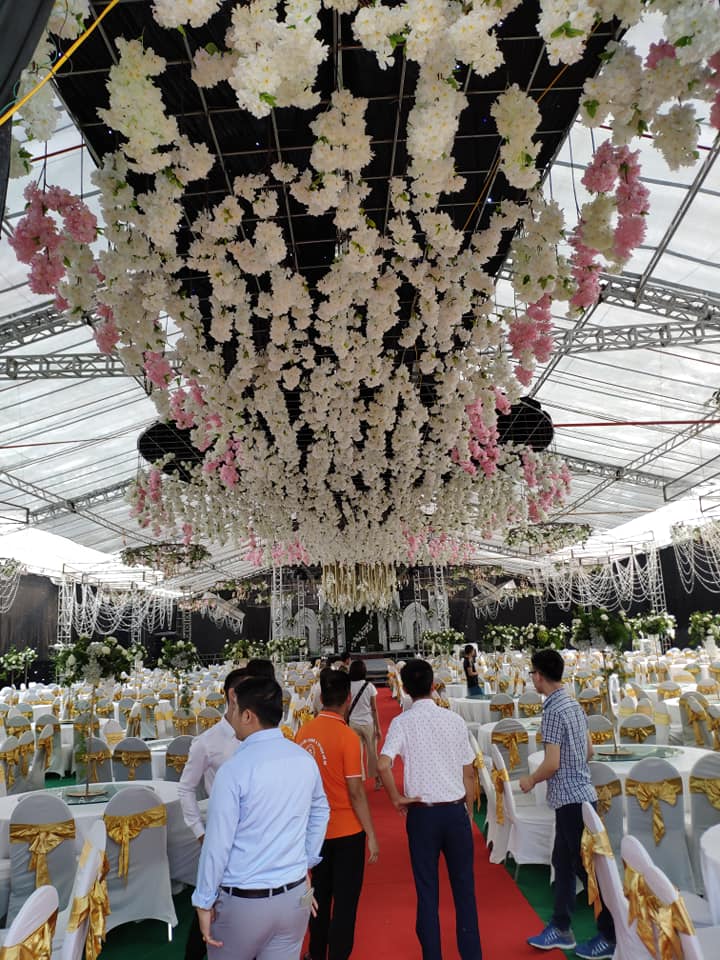 Theo thông tin lan truyền, chi phí cho dàn khách mời khoảng 500 triệu đồng. Ngoài ra, không gian đám cưới rộng 1500m2, toàn bộ rạp cưới siêu lớn được dựng tại gia nhà cô dâu, tất cả đều được trang trí bằng 100% hoa tươi. Trong đó có 10 nghìn bông hoa hồng trắng nhập khẩu, 6 nghìn cành cẩm tú cầu, 3 nghìn cành lan hồ điệp trắng và vô số những loài hoa khác.