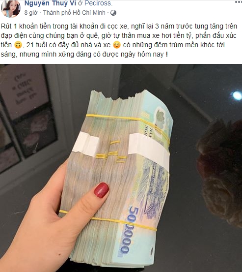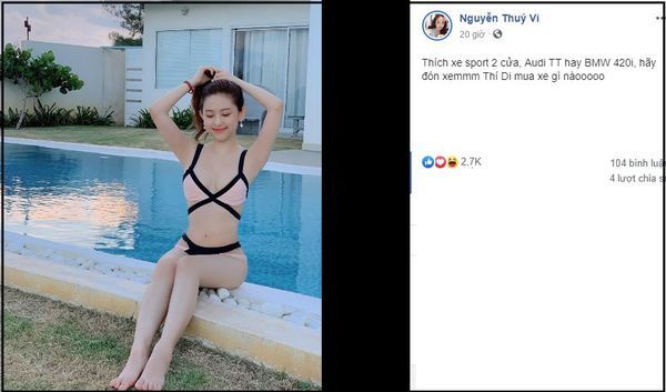 Mới đây, trên trang Instagram cá nhân, Thúy Vy tự hào khoe rút tài khoản tiền tỷ đặt mua xe 2 tỷ. Tuy nhiên, sự hào hứng của hot girl Cà Mau đã vấp phải không ít những tranh cãi.