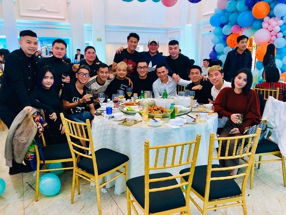 Ngoài gia đình hai bên, buổi tiệc còn có sự tham dự của nghệ sĩ Tự Long, Tú Dưa, cầu thủ Mạc Hồng Quân,…