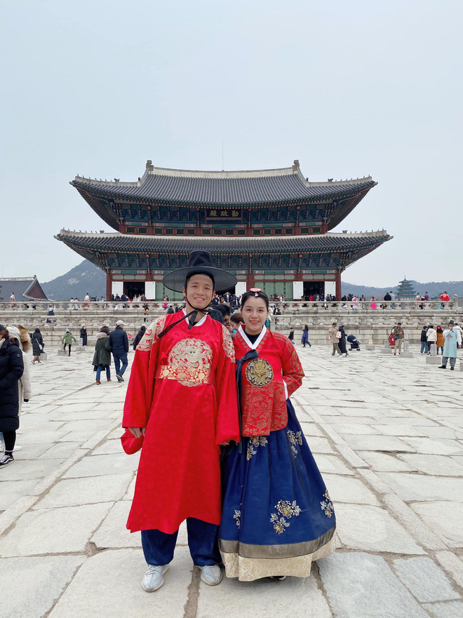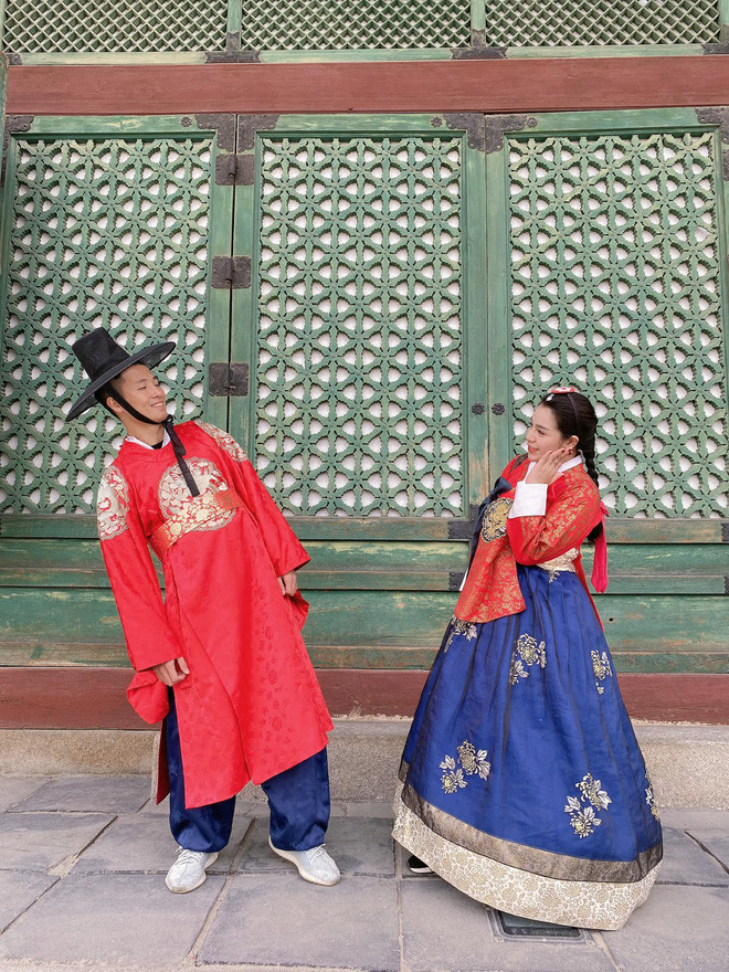 Đôi vợ chồng trẻ đã có một chuyến du lịch trọn vẹn khi cùng người mình yêu đi thăm khắp các danh lam thắng cảnh tại Hàn Quốc như: Cung điện cung điện hoàng gia Gyeongbokgung (Seoul), Tháp Namsan (Seoul) và một địa điểm du lịch nổi tiếng khác. Cả hai cũng cùng nhau diện Hanbok - trang phục truyền thống của Hàn Quốc và chụp ảnh để lưu giữ lại những kỷ niệm ngọt ngào, đáng nhớ tại nơi đây.