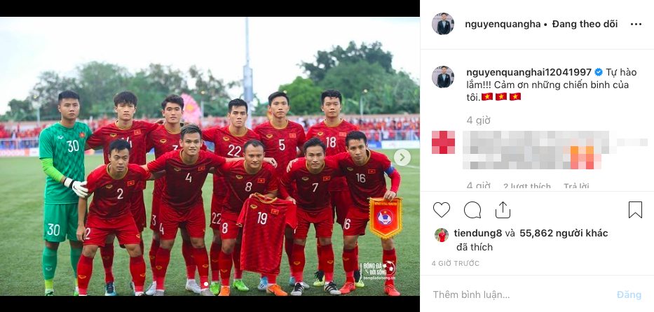 Kết thúc trận đấu, Quang Hải đã đăng bài chúc mừng thắng lợi của U22 Việt Nam khi đội bóng giành được chiếc vé vào bán kết SEA Games 30, đồng thời “tiễn” U22 Thái Lan về nước ngay sau vòng bảng với nội dung: “Tự hào lắm! Cảm ơn những chiến binh của tôi”.