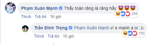 Xuân Mạnh cũng hài hước bình luận dưới tấm hình của đồng đội