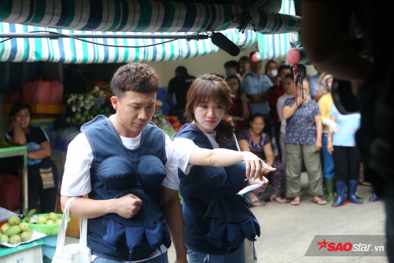 Cặp đôi Trấn Thành - Harri Won tranh thủ mua hàng để hoàn thành thử thách chương trình đưa ra.