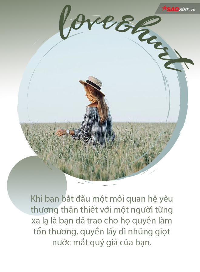 Một mối quan hệ mà chỉ khiến bạn đau lòng, mỗi ngày với bạn đều là sự chịu đựng thì không còn là tình yêu nữa rồi. Bạn phải rời đi ngay thôi. Đừng bướng bỉnh cho rằng đó là tình yêu. Làm gì có thứ tình yêu nào lại bào mòn cảm xúc, hủy hoại tâm hồn con người ta như vậy? Cuộc sống độc thân có thể không cho bạn những lần đón đưa hò hẹn, sẽ khiến bạn nhiều lần trong ngày cảm thấy cô đơn, nhưng sẽ không có vết thương nào hết. Và một hôm nào đó, một ai đó khác sẽ tới và cướp đi hết thảy những nỗi cô đơn đó. Còn như bạn cố chấp ở trong mối quan hệ tồi tệ, vết thương sẽ không thể tự lành, cũng không ai có cơ hội được giúp bạn cả.