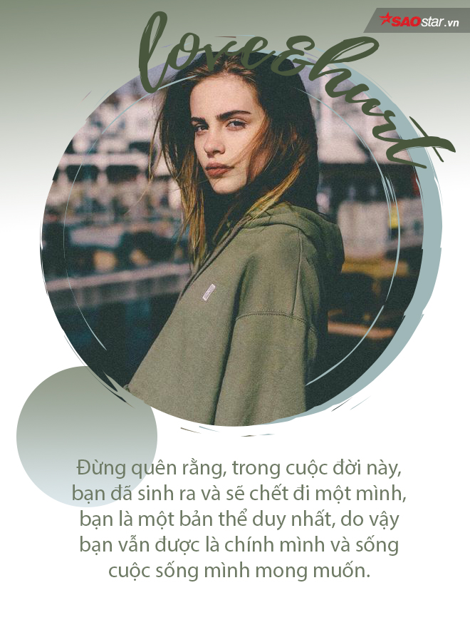 Đừng quên rằng, trong cuộc đời này, bạn đã sinh ra và sẽ chết đi một mình, bạn là một bản thể duy nhất, do vậy, dù đã rơi vào tình yêu, dù đã chọn đồng hành với một người khác nữa, bất kỳ điều gì bạn làm cũng sẽ nghĩ tới một người nữa, nhưng bạn vẫn phải có cuộc sống của mình, bạn vẫn được là chính mình và sống cuộc sống mình mong muốn chứ không phải cố gắng để trở thành người mà đối phương mong muốn hay chịu đựng mối quan hệ đó vì bất kỳ lý do gì.