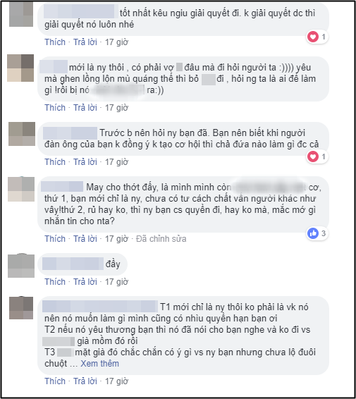 Để lại bình luận bên dưới bài đăng, rất nhiều cư dân mạng đã chỉ trích cô gái ghen tuông thái quá. Đúng như người phụ nữ lớn tuổi nói trong những đoạn tin nhắn, việc rủ là việc của họ còn việc có đi hay không là việc của chàng trai. Nếu vì không quản nổi người yêu mình mà đi nhắn tin “dằn mặt” người khác liệu có phải cô gái đang thiếu tự tin và không có cảm giác an toàn trong tình yêu?