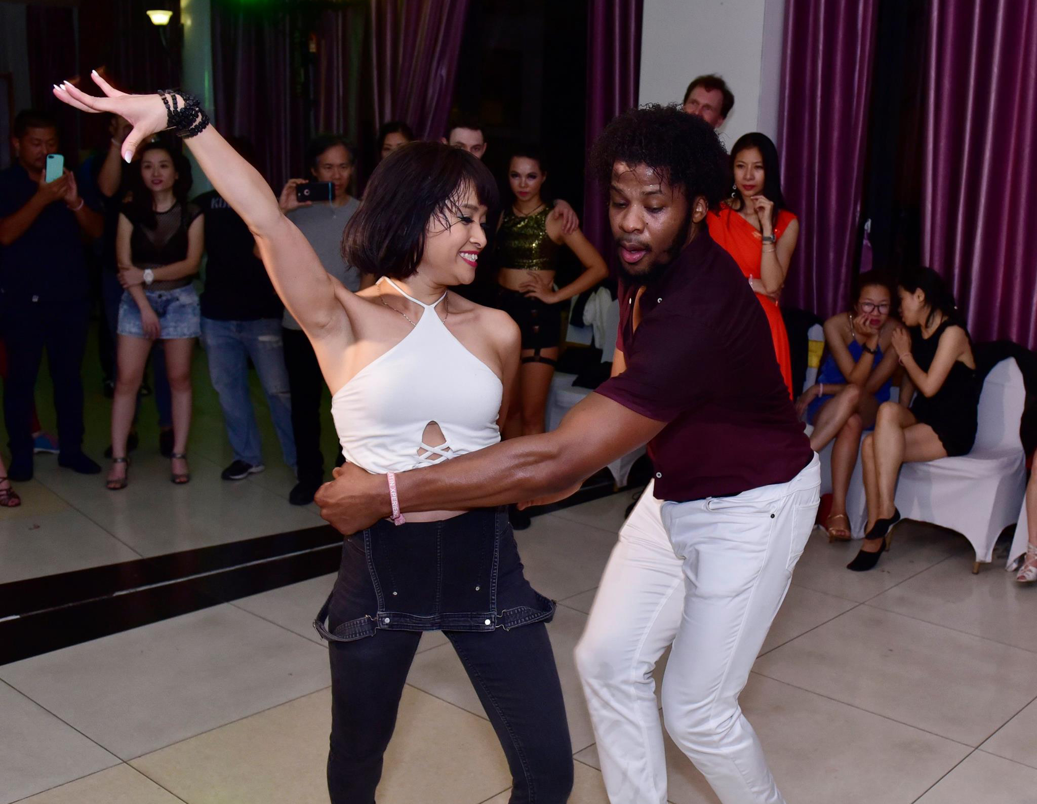 Chị Đỗ Sao Mai - Chủ tịch CLB Beso Latino nhảy giao lưu cùng nghệ sĩ Terry SalsAlianz (Pháp).